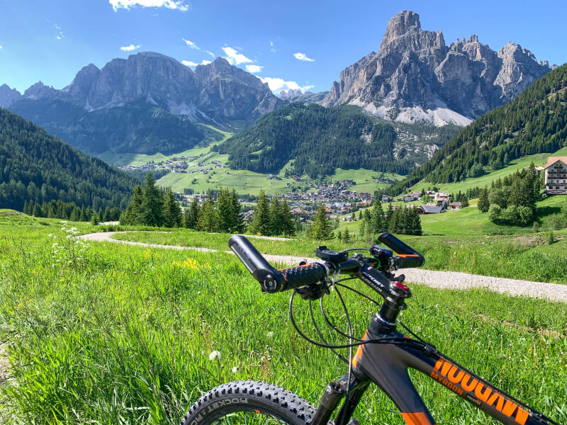 Schon die Anreise durch Südtirol über Brixen,Bruneck nach Alta Badia lohnt sich. Ich hatte in Corvara,auch das Kitzbühel der Dolomiten genannt, in einem kleinen Hotel für meine Frau und mich gebucht. Wir waren da schon öfters und meine Frau kannte die Wirtin gut. Da gab es bestimmt vieles zu erzählen solange ich auf der Sellarunde unterwegs war. Vom Zimmerbalkon aus sah man den ersten Pass, Passo Gardena.