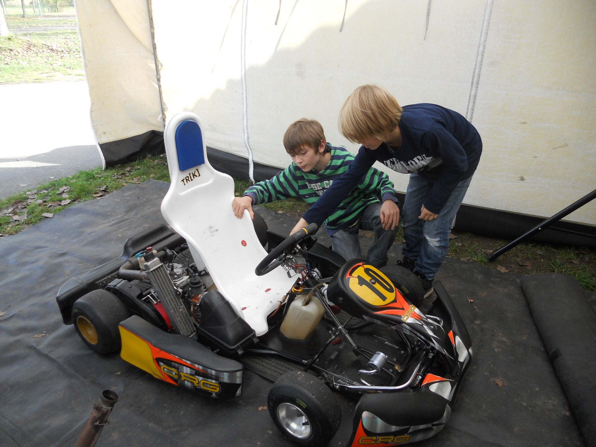 Die "Rennfahrer" in der Boxengasse beim Schrauben und Einstellen der Gokarts. Offensichtlich machte es allen mächtig Spaß.